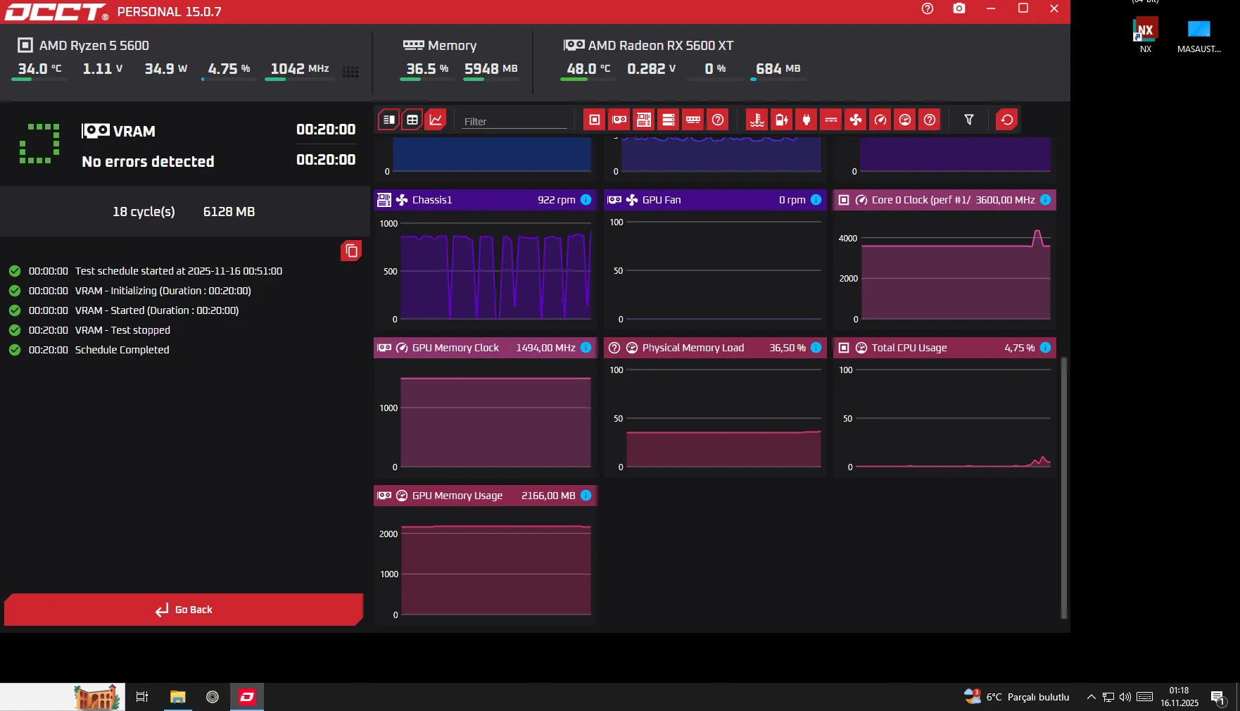 OCCT ile VRAM ve 3DADAPTIVE TEST SONUCLARI