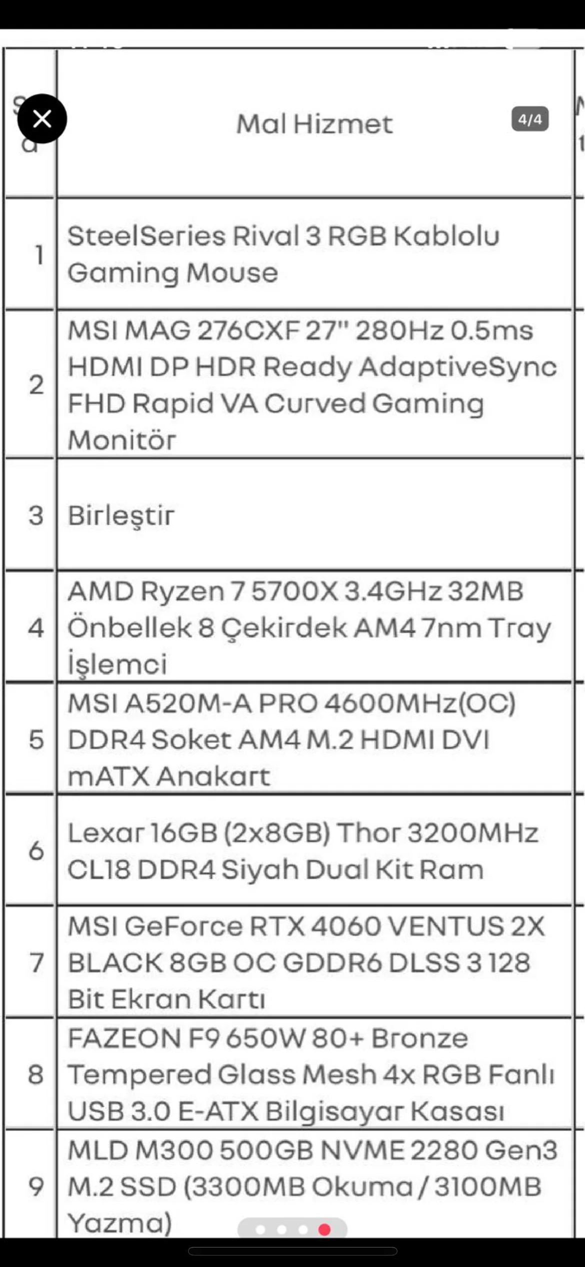 MSİ RTX 4060 VENTUS 2X, MSI MAG 276 CFX MONİTÖR 280Hz 0.5MS, MSI A520M-A PRO DDR4 4600 Mhz (OC), LEXAR 16GB 3200, FAZEON F9 650w 80+, LOGITECH G213, STEELSERIES RIVAL 3, SİSTEM SETUP HALİNDE SATILIKTIR. IMG_4017.webp 125 KB · Hit: 114 IMG_4018.webp 40.6 KB · Hit: 28