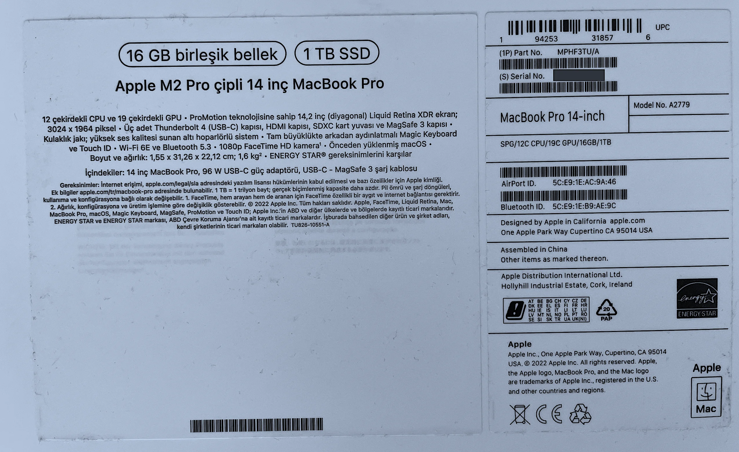 - Apple M2 Pro (12 çekirdek CPU / 19 çekirdek GPU) (*Yükseltilmiş donanım)