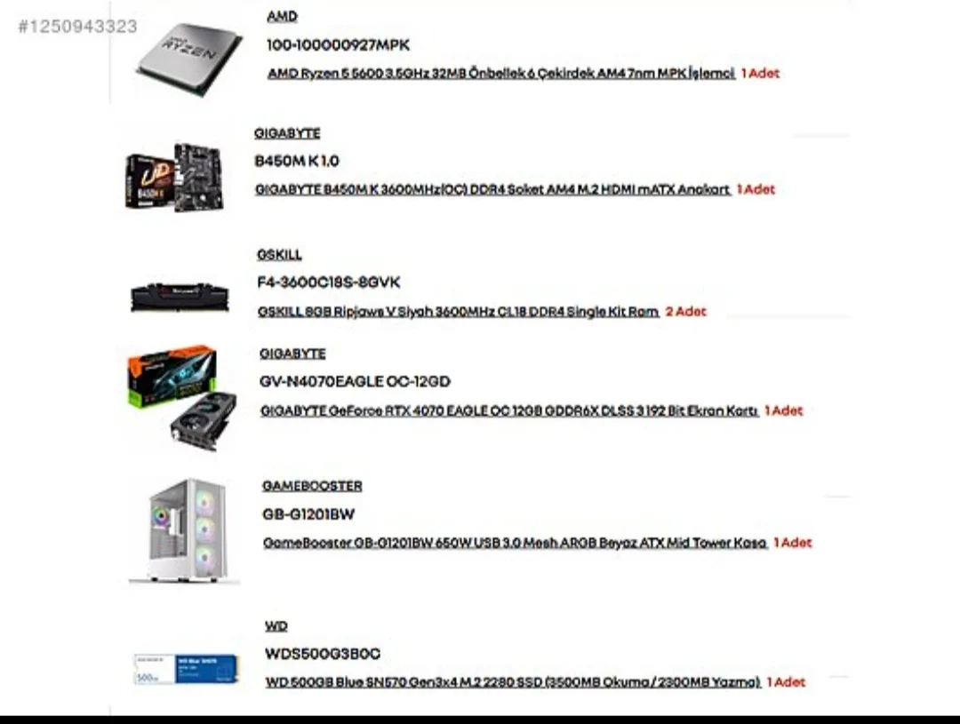 Satılık SATILIK | Hazır Sistem | Gigabyte 4070 Eagle, R5 5600 33.500TL