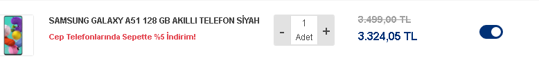 Sepete telefonu eklediğinizde %5 indirimli fiyat karşınıza çıkıyor