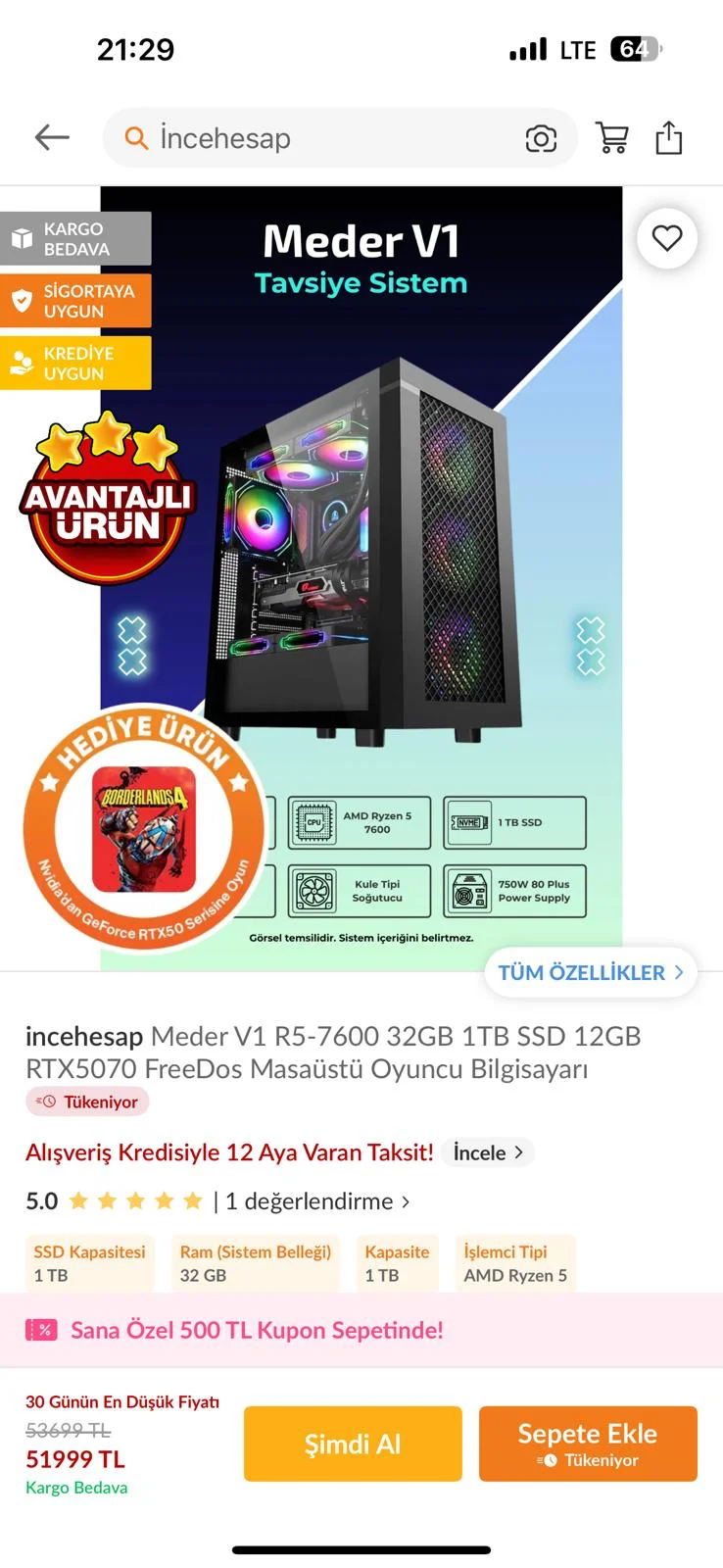 Üzerine 5070 sistemlerde oyun hediyeleri var, Borderlands4. Bir de 9 taksit var. bundan iyisi şamda kayısı.