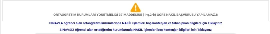 e-Devlet üzerinden nakil yapmaya çalışınca aşağıdaki hatayı veriyor.