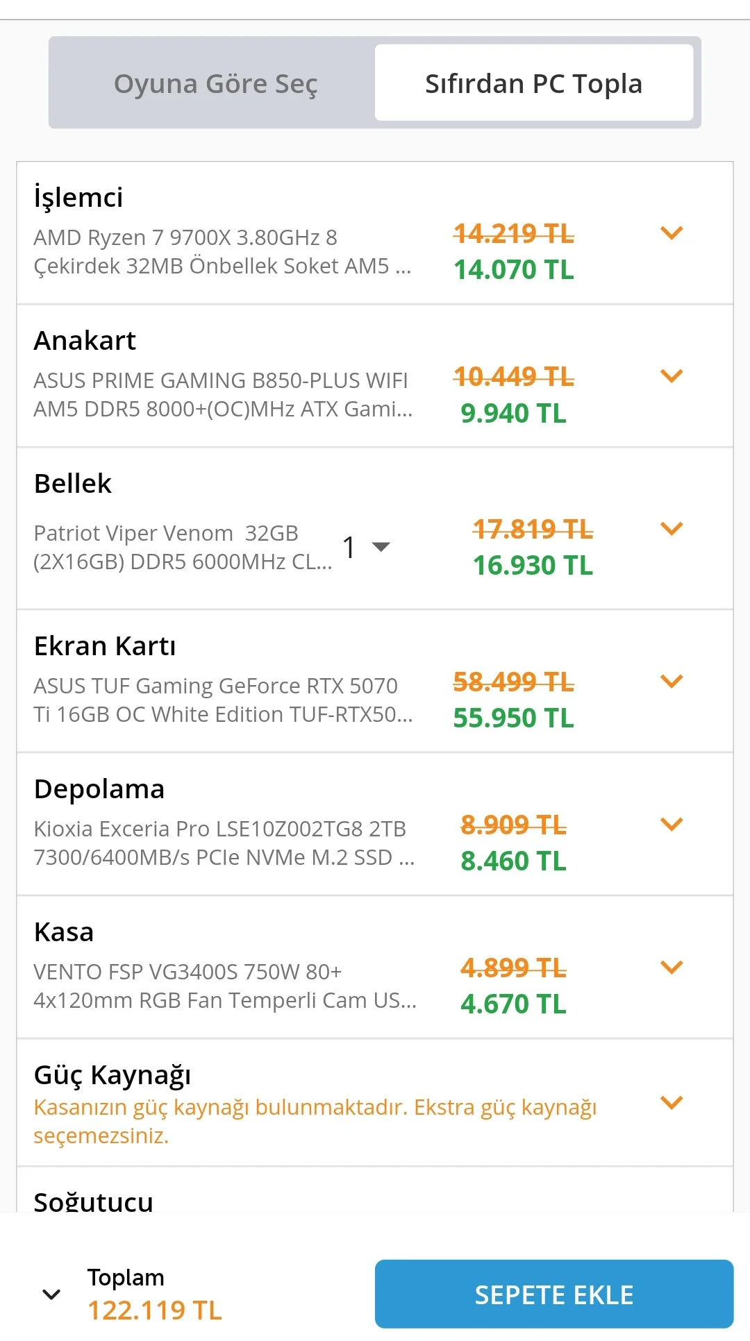 Acaba ekran kartı 5070 yapsam bütçe arttırıp