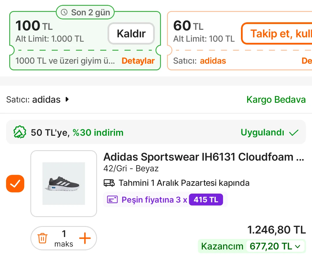 42, 42.5, 43 ve 44 bedenleri mevcut, satıcı adidas