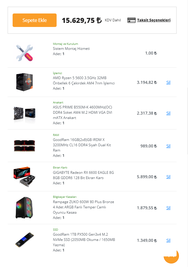 Bu sistemde fena değil rx6600 iyi bir kart ama rtx 3000 serisi kart istiyorum diyorsan https://www.gamegaraj.com/urun/ahora-5a-rtx3060-ti/ bu olabilir bunu özeleştir 3060 ti yap işlemciyi de 5600 ve SSD yi de altaki ssdyi seçip al 16100 TL oluyor karar senin