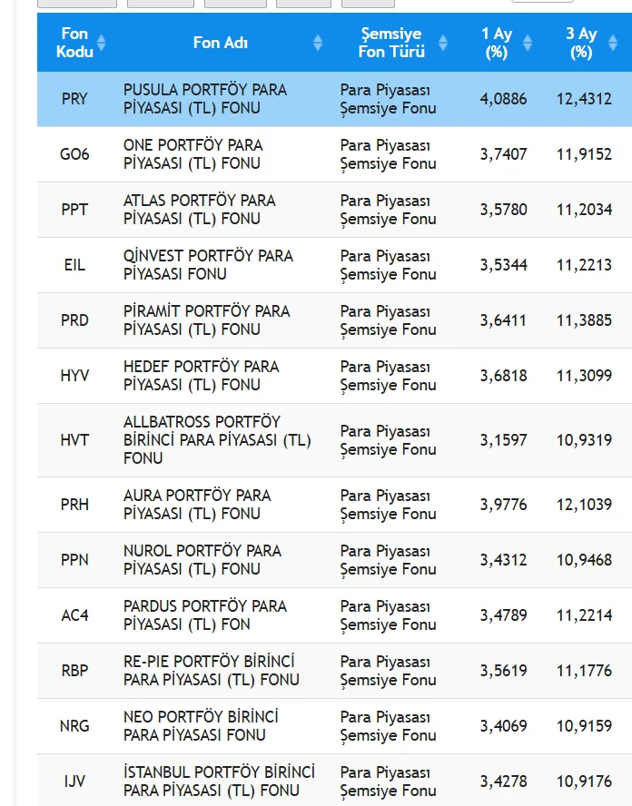 Dediğim gibi para piyasası, borçlanma araçları vb. gibi fonlarda zaten getiriler çok değişmez. Bankanınkini de tercih edebilirsin ama en son ayki performansına göre girebilirsin. Örneğin kasım ayı için;