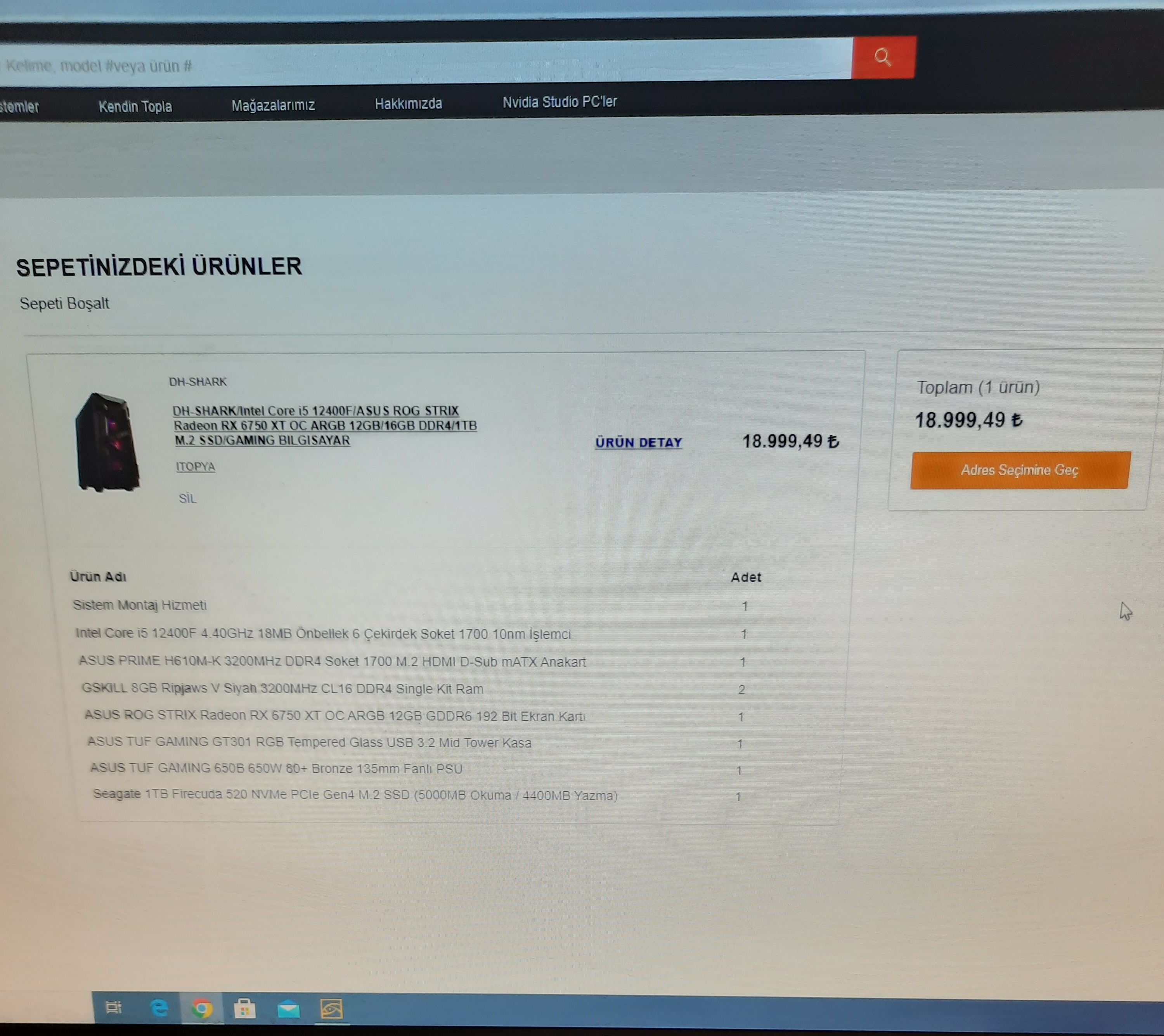 hocam hayır öyle değil. şu an sistem 18.999 TL fiyatıyla herhangi bir özelleştirme yapmadan sepete ekleyebiliyorum