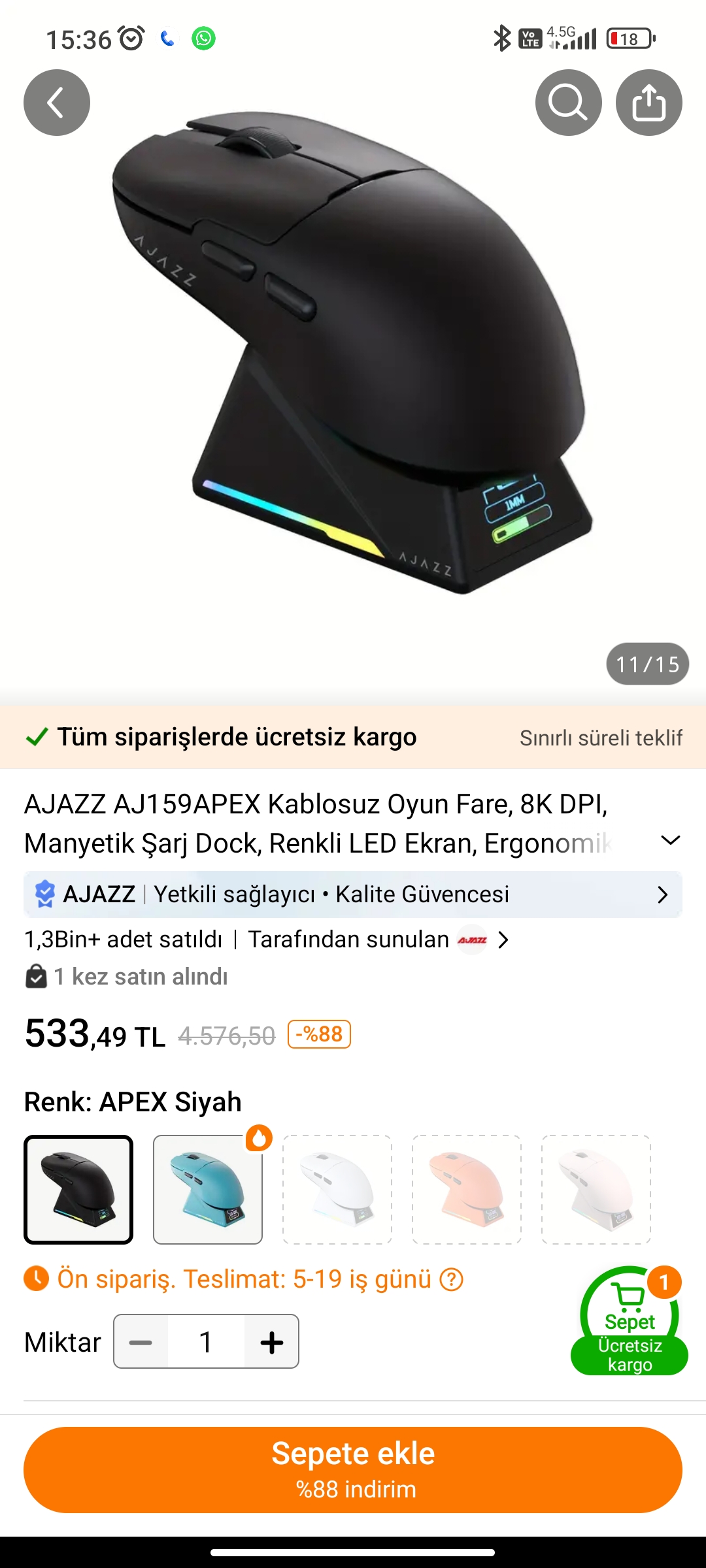 bu aralar herkezin aldığı ajazz aj159 apex ten alArada sirada oyun oynicam notebook kullanmak icin kablosuz olsun yeter rengi onemli değil