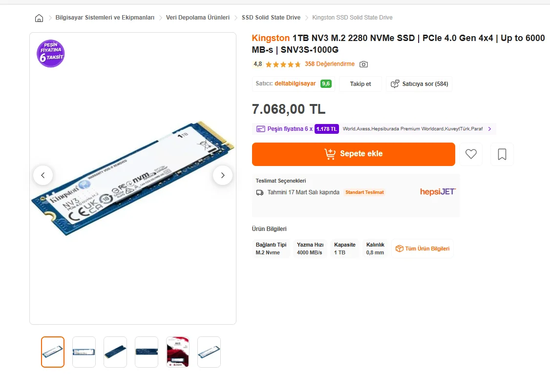 birisi çıkıp ekstra bir indirim yapınca piyasadaki tüm ssd ler pahalı mı olmuş oluyor. iyi denk getirmişsin takip etmek lazımDaha geçen Gen5 ssd yi medimark 2 tb ı 8k ya sattı. Bende 1 tb var satıyım istersen cikma