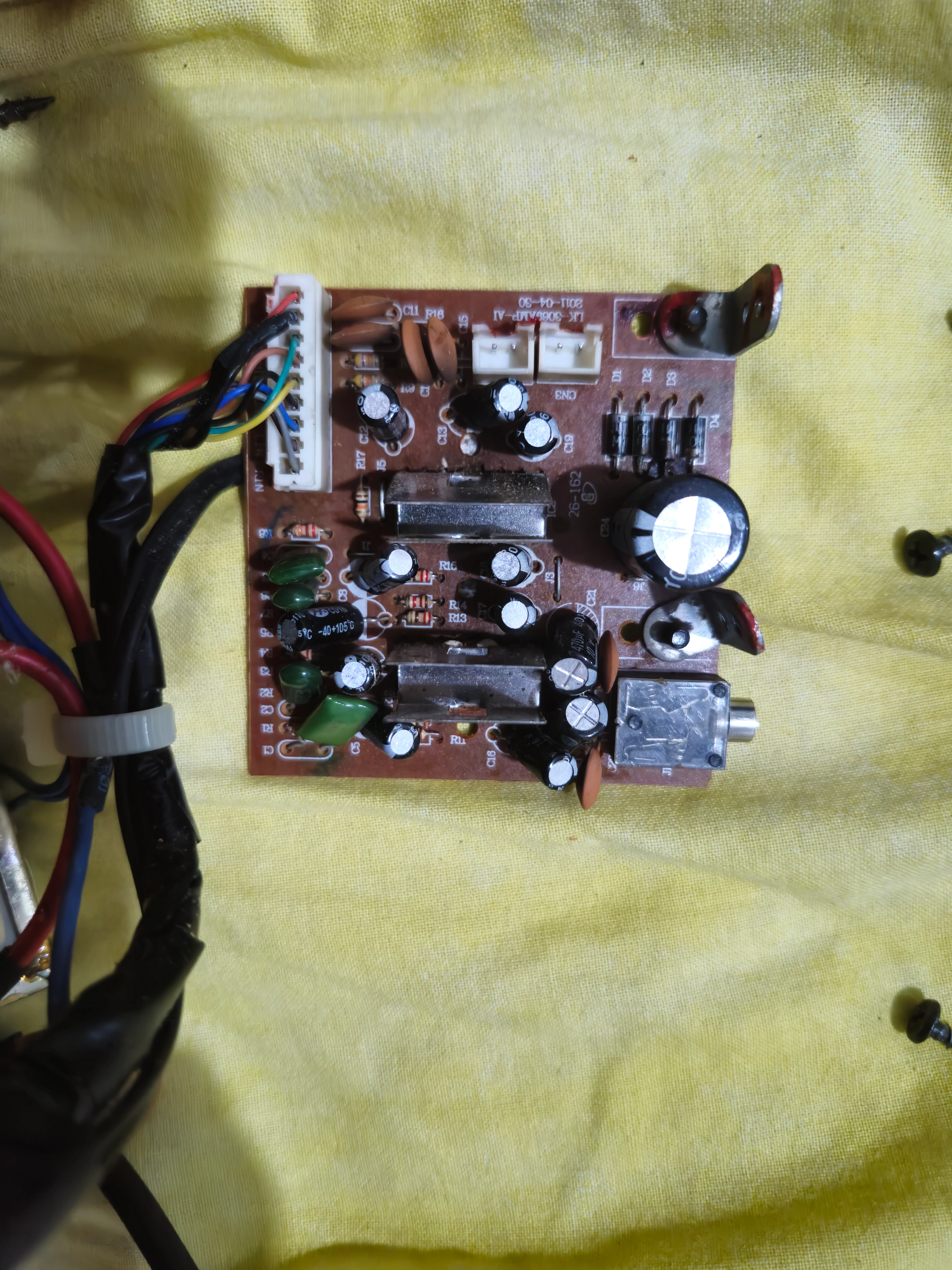 Hocam aynı devrenin hurdasını ucuza düşürürseniz belkide o da zor eski bi cihaz yenisini almanızı tavsiye ederim ses sisteminin. Eğer kırmasaydınız büyük ihtimal çözerdik