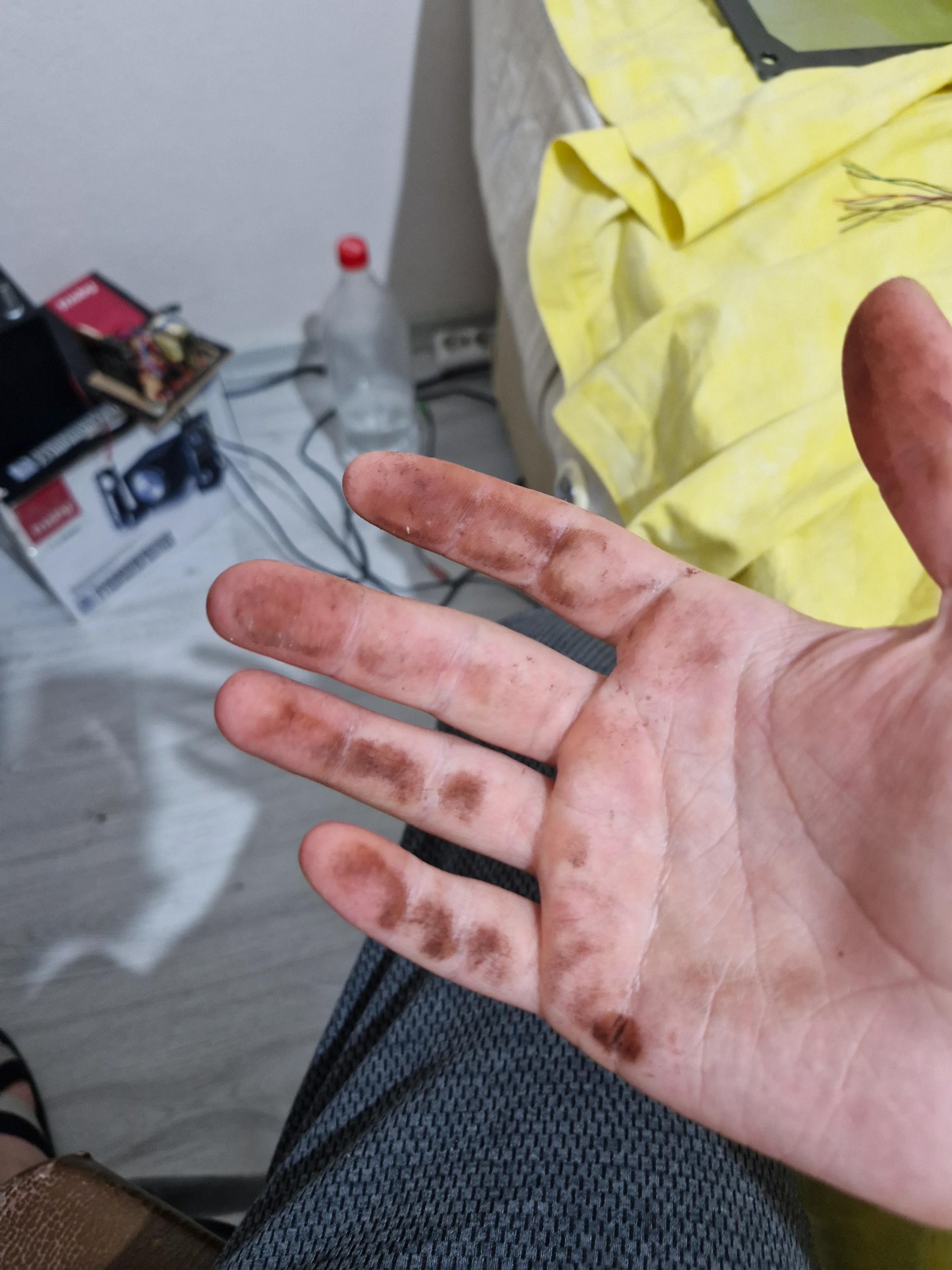 Açtım içini Söktüm anfiden kabloyu olduğu gibi kestim paramparça ettim belli aralıklarla ile böyle çürümüş paslanmış bildiğin bütün kablo dökülüyor