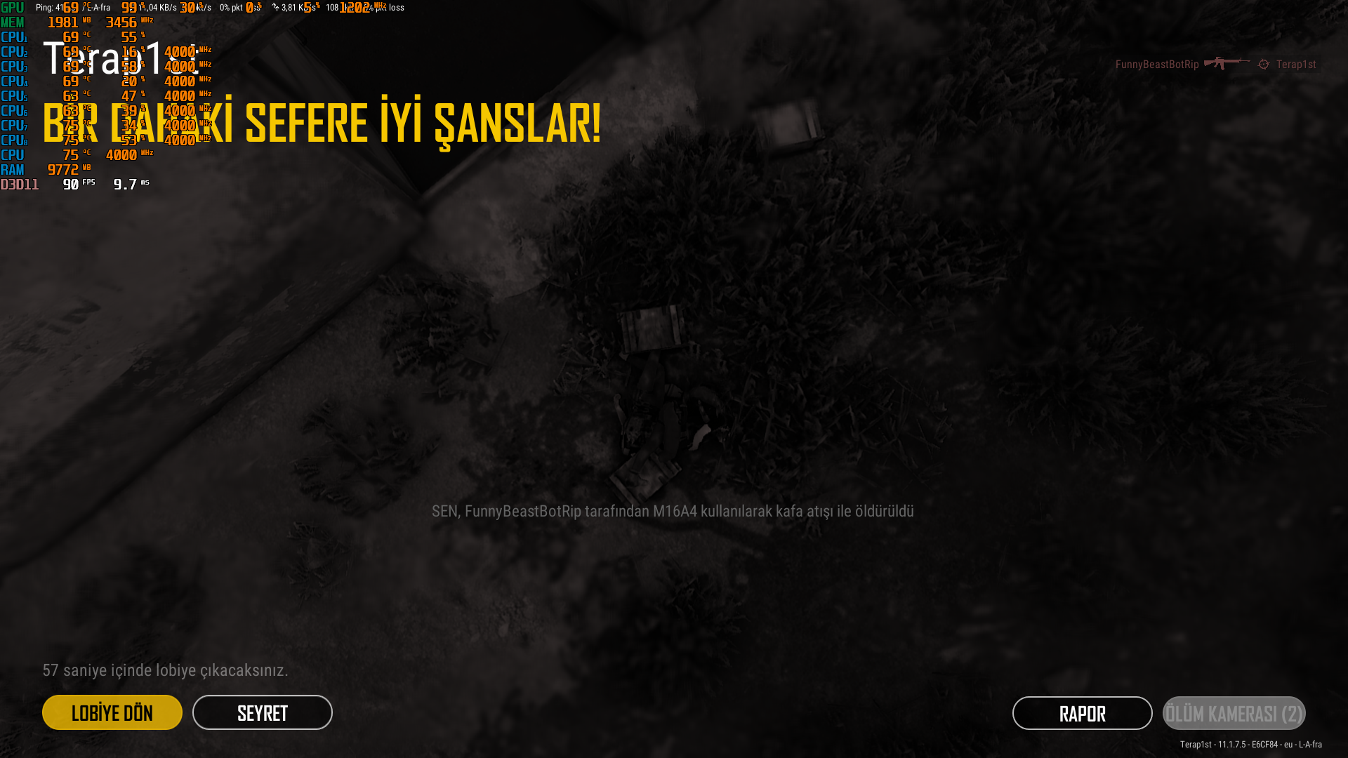 PUBG - Steam Versiyon - 1080p Yüksek ayarlar İki farklı oyuna girip görüntüleri aldım.