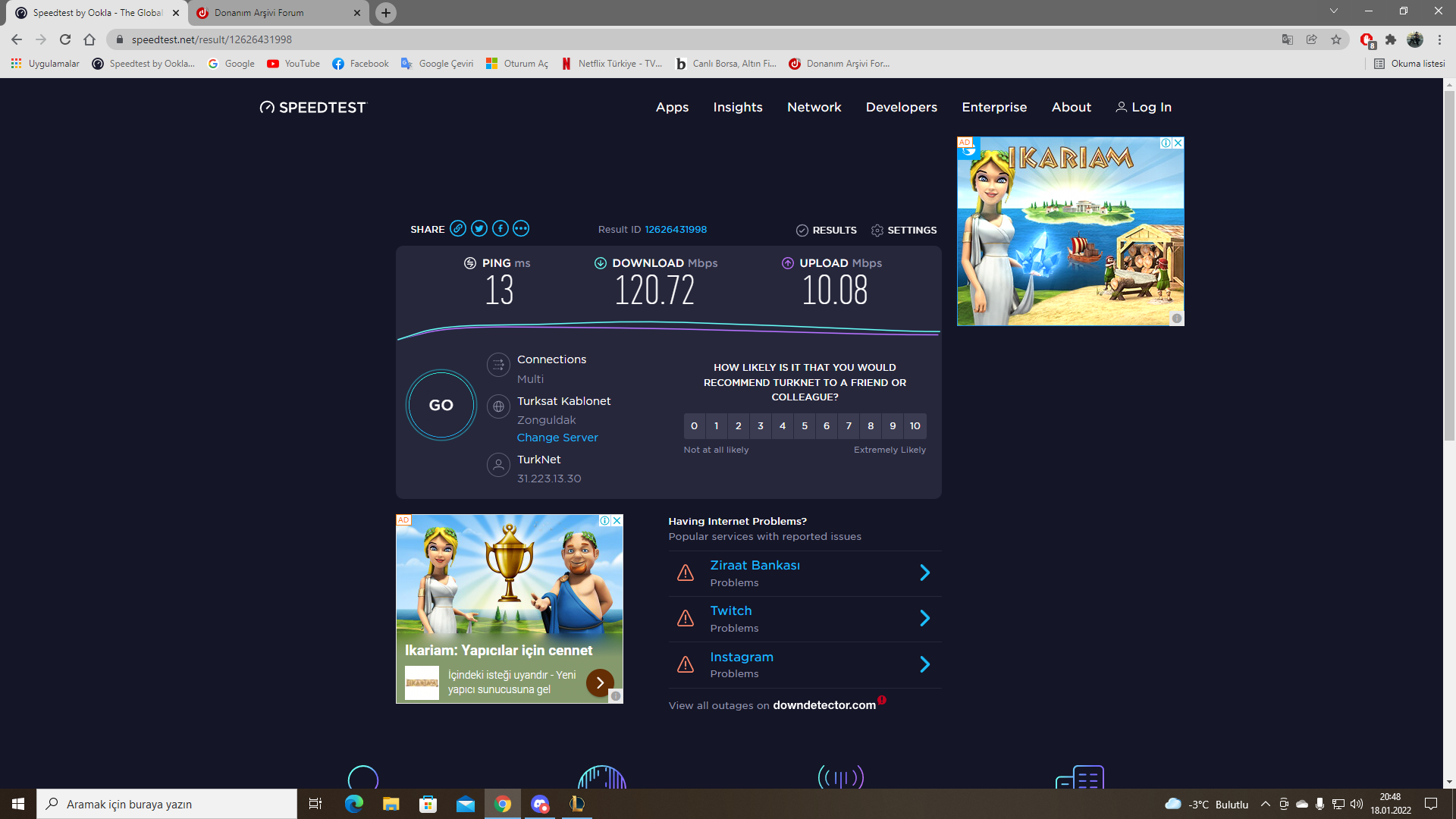 tamam bak orda türknet ankara diyor sen ise testi zonguldak yapmışsın ondan ping çıkar.