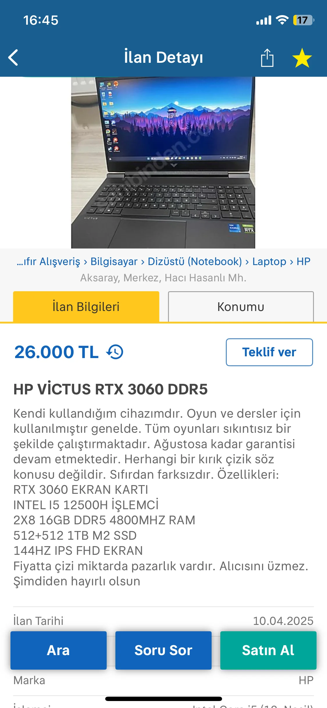 Okul için kendime bi laptop almak istedim ama aynı zamanda oyunda oynamak istiyorum ve 2. El laptop almaya karar verdim fotoğraf da ki laptobun bileşenleri özellikleri markası baz alındığı zaman fiyatına değer mi ne kadar pazarlık yapmalıyım ve almaya karar verdikten sonra be gibi testler yapmalıyım satıcıya hangi soruları sormalıyım şimdiden teşekkür ederim.