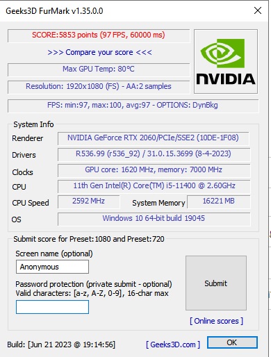 Çok uygun bir fiyata RTX 2060 buldum 2.el FurMark testi istedim bu SS'i attı sizce normal mi alınır mı? Asus ROG Strix GeForce RTX 2060 EVO OC GAMING 6GB.
