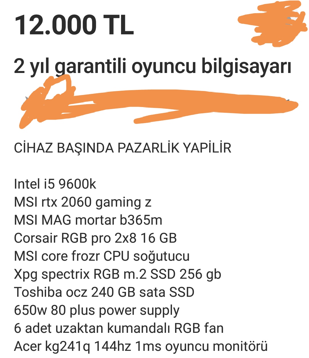 2. Elin fiyatı düşmesi gerekirken bunun gibi fırsatçı arkadaşlar nasıl barınıyor böyle mecralarda anlamıyorum. Adam 2 3 teknik yazı ekliyor ve "0 fiyatının " daha altında satması gerekirken 1.5, 2k üstüne satıyor inanılmaz. (siteyi kötülememek için karaladım bazı yerleri. Yazı tipinden belli zaten hangi site oldugu) (pazarlık var yazıyor ancak öyle 3k yapacak değil ya max 750tl yapar)
