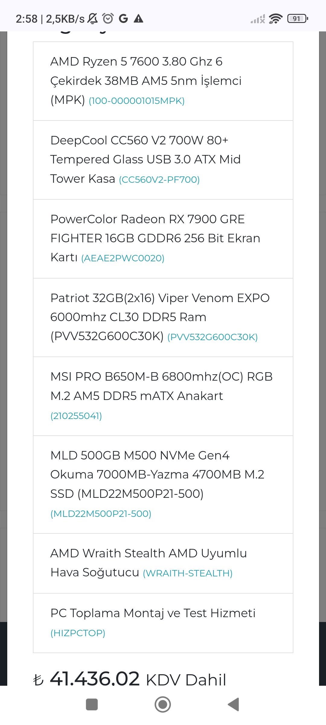 Benim attığımı alman çok çok daha iyi olur. Bütçeni zorlamak istemiyorsan 23k lık 7500f rx7600 fazlasıyla işini görür.