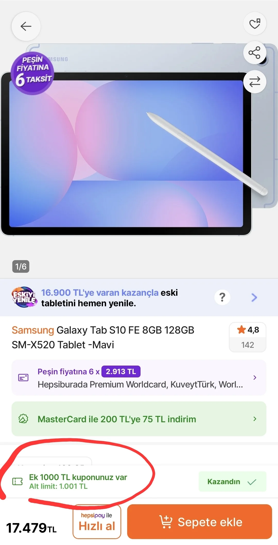 Samsung S10 FE 1000 tl kupon ile 16.500'e iniyor.