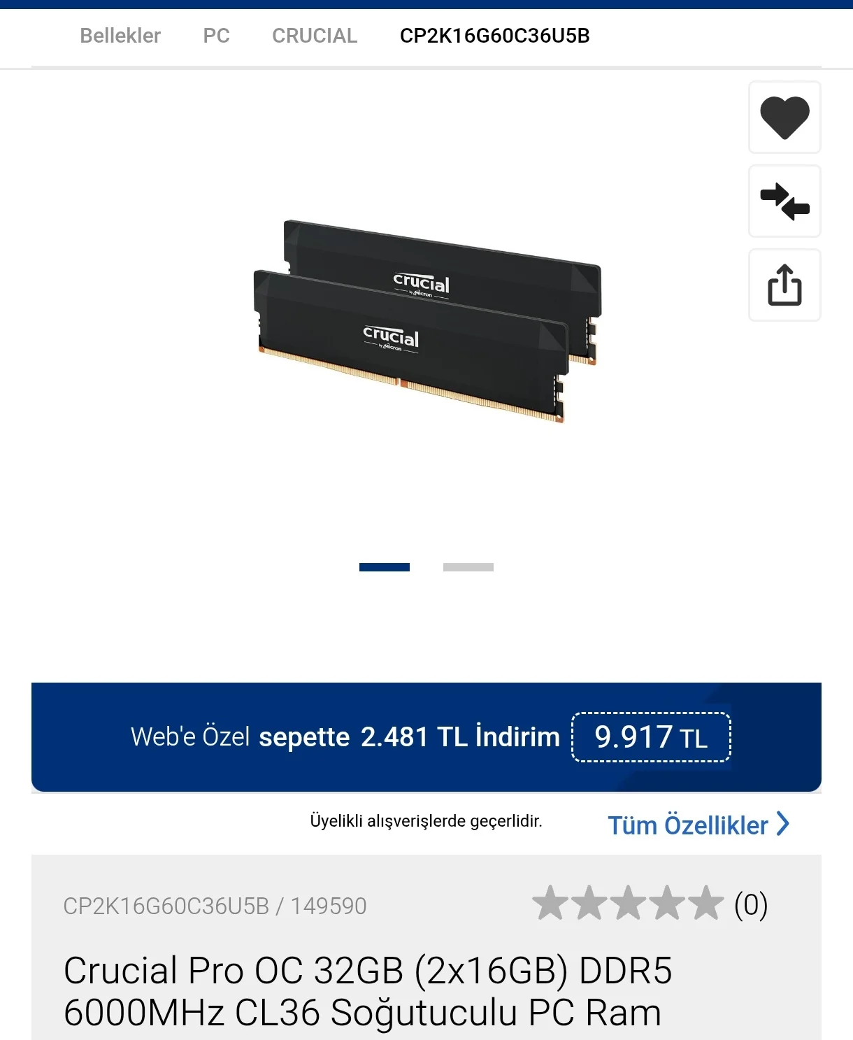 Crucial Pro CP24G60C48U5 24GB DDR5-6000 UDIMM CL48 (24Gbit) Soğutuculu PC RAM fiyatı, teknik özellikleri, modelleri, en ucuz fiyatlarla Vatan Bilgisayar'da