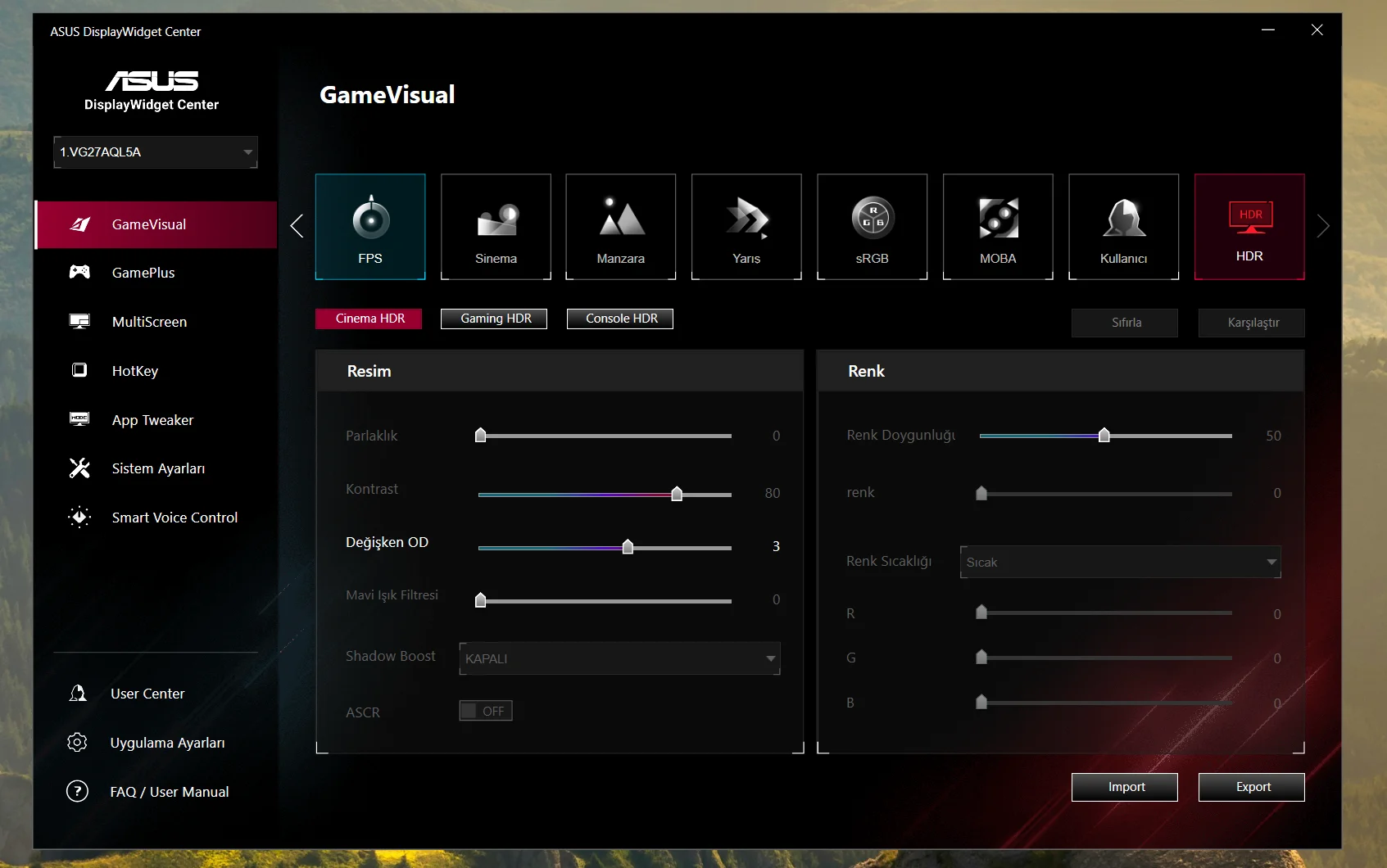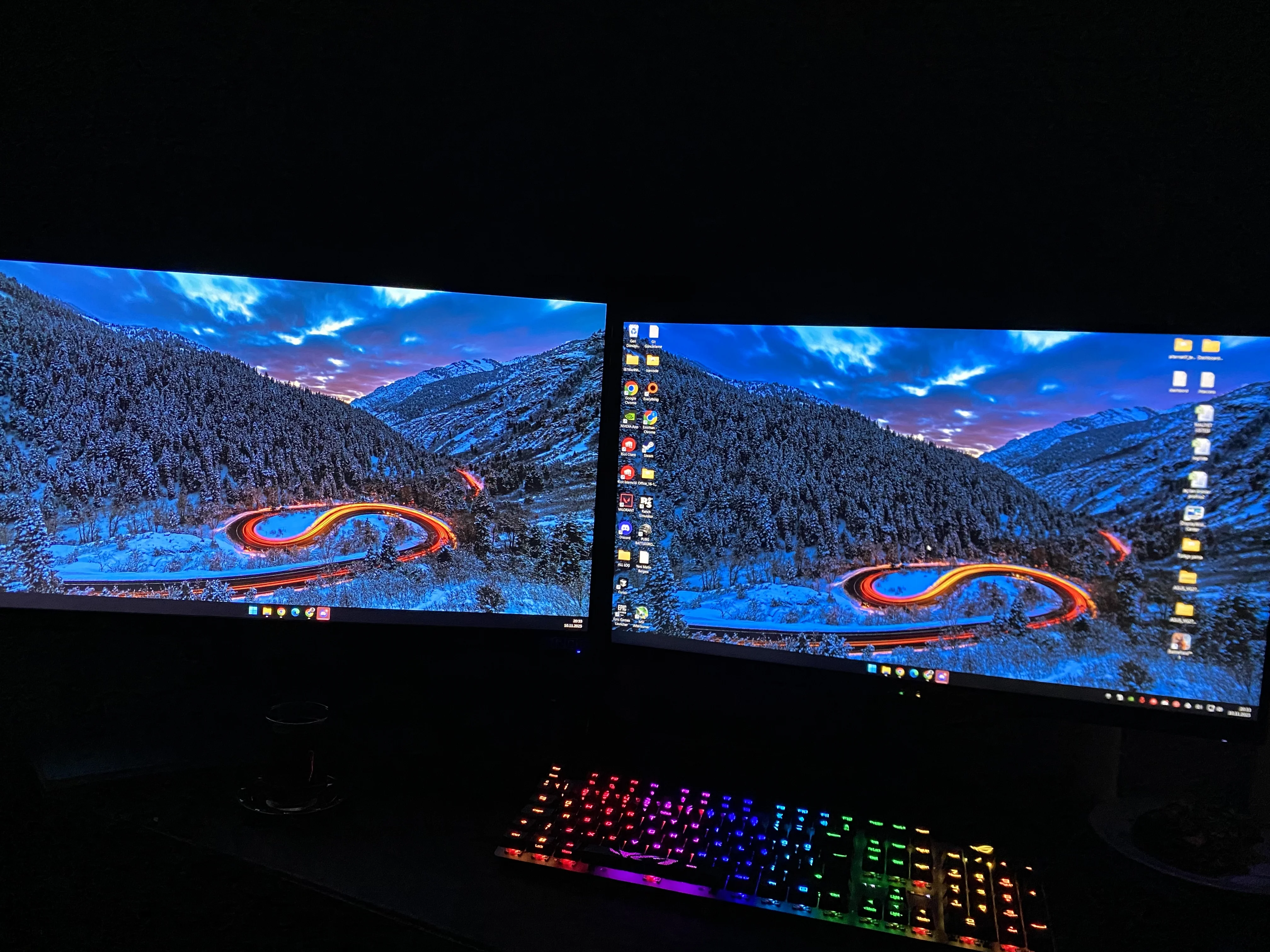 Alt barda sağda ikonlar gözüken monitör asus monitör diğeri acer. Işık sızması kameradan oldukça devasa gözüküyor ama gerçekte neredeyse yok.