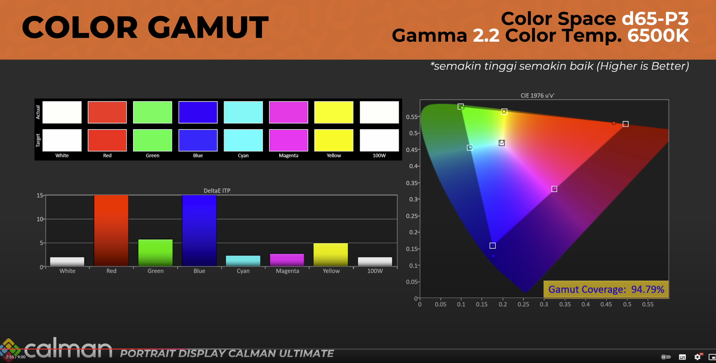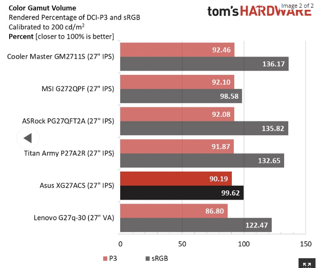 Yanlış. Lenovo'nun renk gamutu hepsinden daha iyi. MSI ve Asus %90-91 iken Lenovo 94.5. Ayrıca Lenovo'da G-sync de var.
