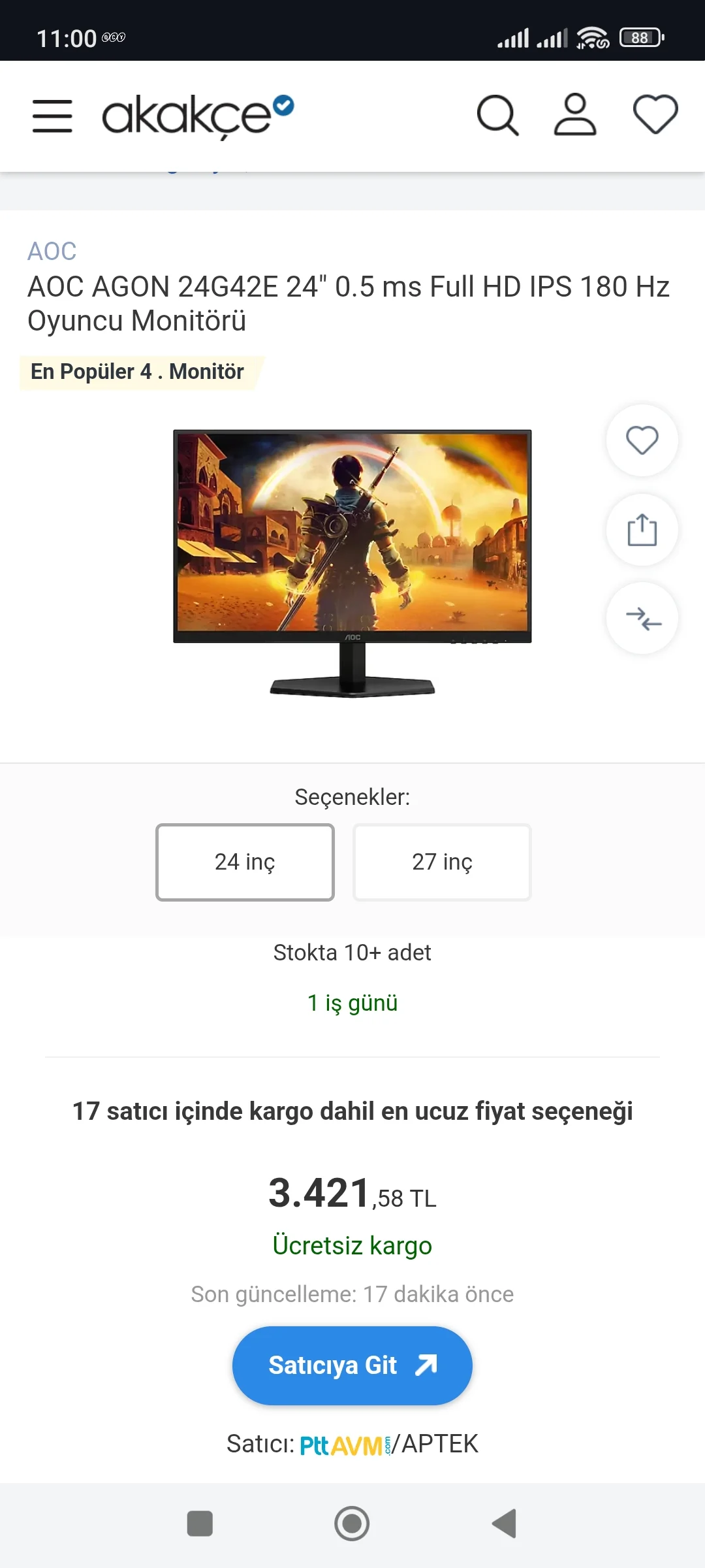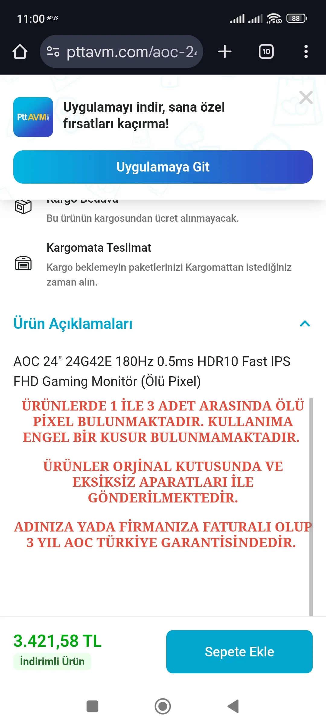 Şu monitörü 3 gün önce aldım. Fiyat düştükçe düştü en son bedava vericekler