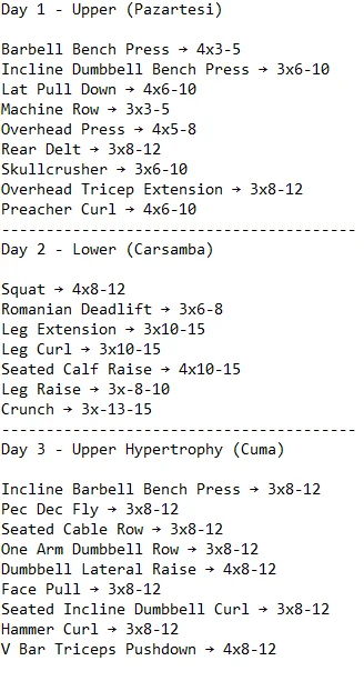 Program fotograftaki gibi 6 aydir gidiyorum spora fakat lise sona gectigim icin 3 gune dusurmek zorunda kaldim 3 gun icin bu program nasil?