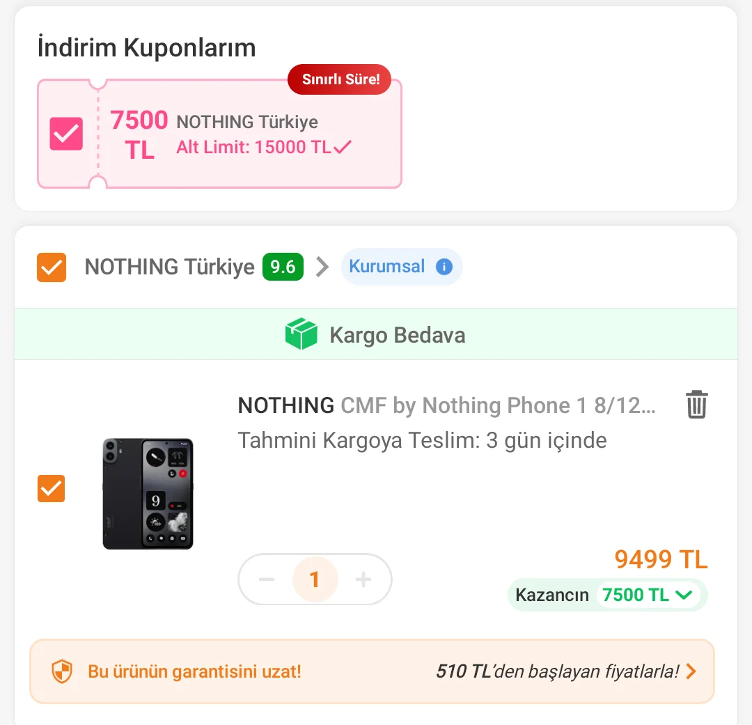 🔥İndirim 🔥3000 TL (NKOLAY + ÖĞRENCİ VERGİ İADESİ İLE) CMF PHONE 1 8/128 - TRENDYOL