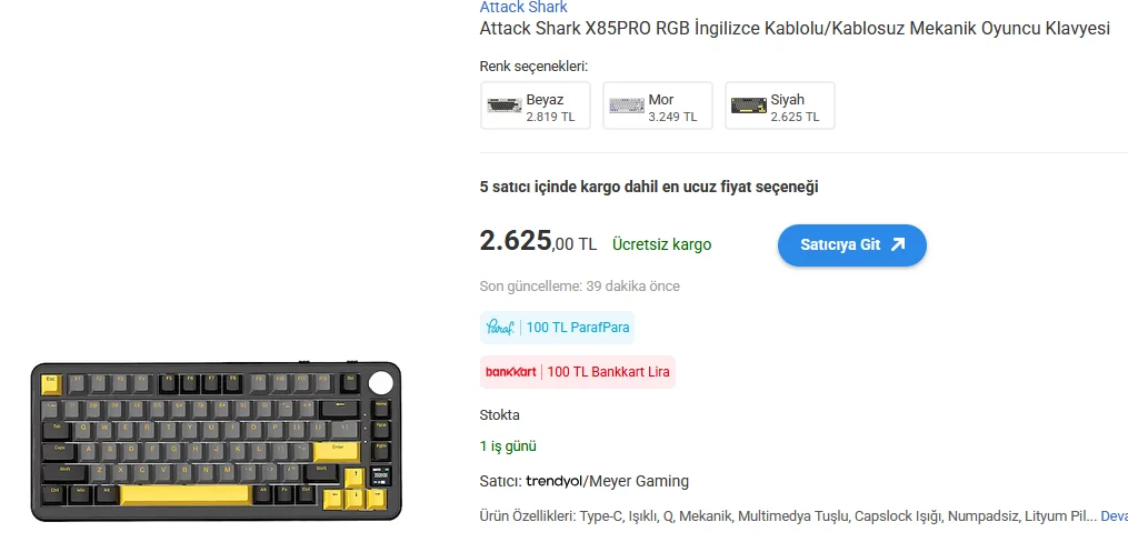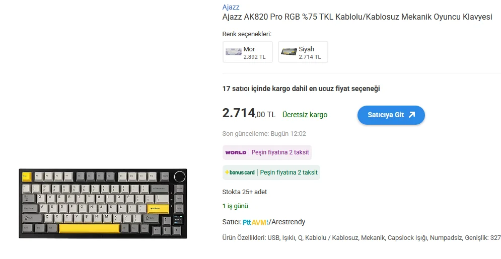 %60-75 arası güzel bir klavye arıyorum, fazla ses çıkarmasın istiyorum