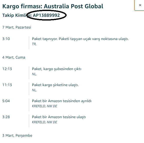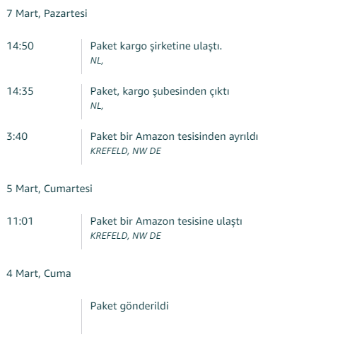 yabancı kargo firmasında böyle ama amazonda 7 mart harici güncelleme yok
