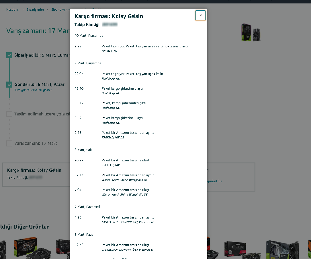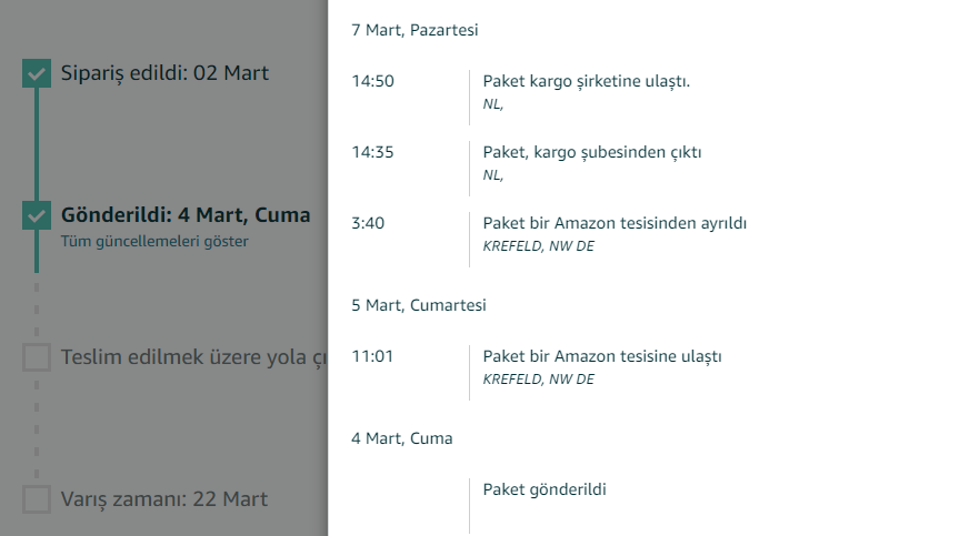 2 martta sipariş vermişim 4 martta harekete geçmiş ekran görüntüsünde olduğu gibi
