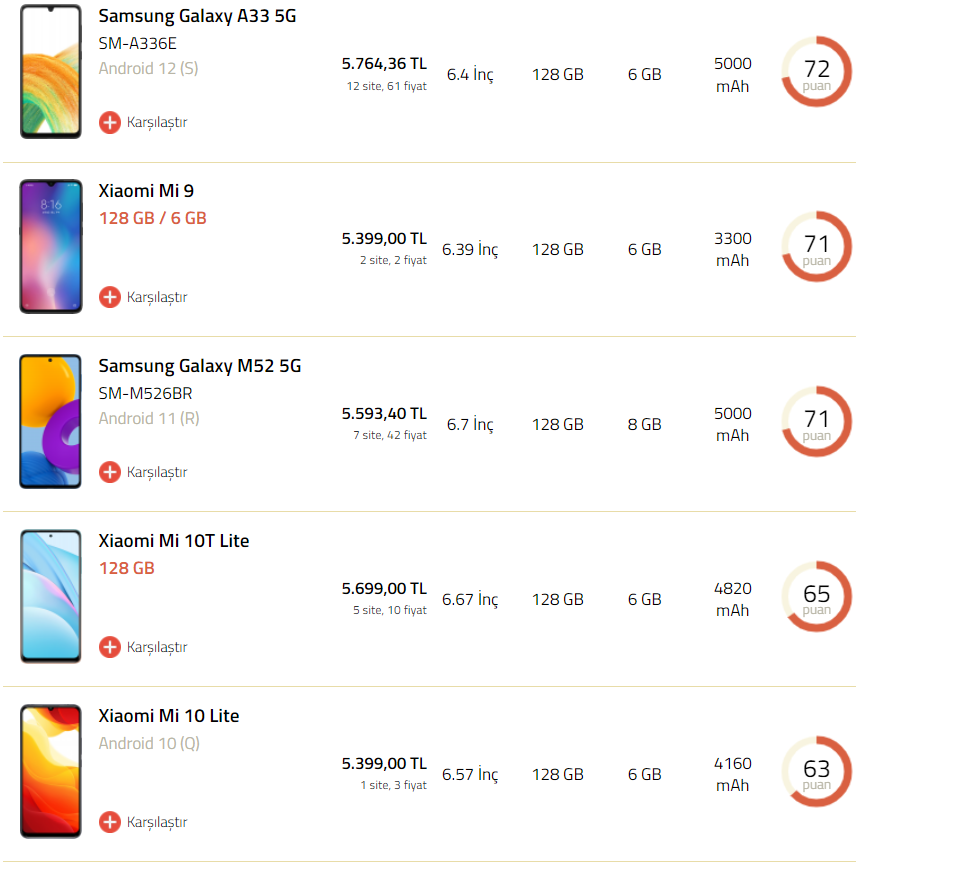 valla hocam samsunglar tokatlıyor bence 71 puan olan mi 9 da 3300 mah ne ya