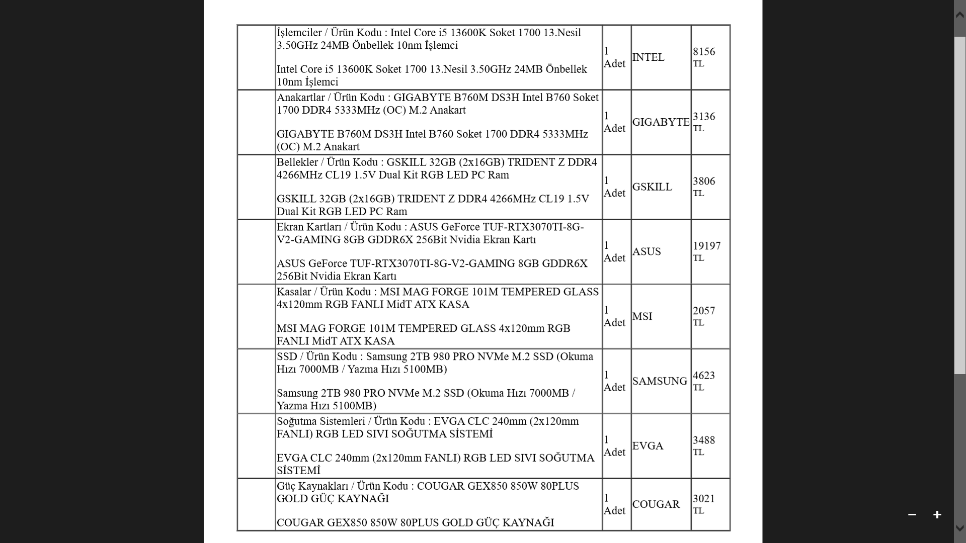 Ekran kartı tam bilmiyorum ama 3070 ti yada 6700 xt yada daha iyi bi öneriniz varsa max 15 bin bütçeli