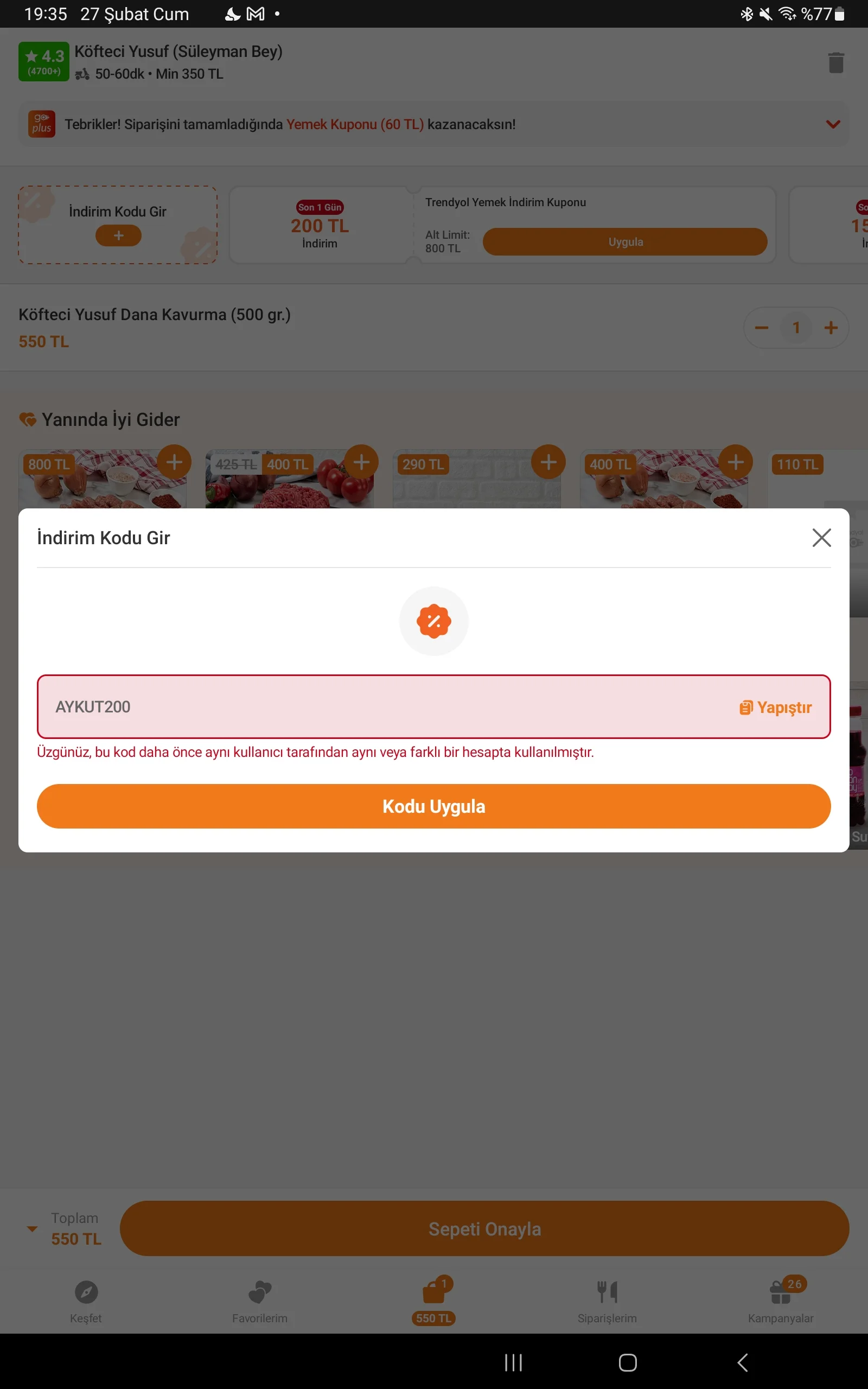 ekledim hocam onu daİftardan sonra yapmasalar iyiymiş saat 23.59 a kadar geçerli OGUZHAN200 de var kod olarak.