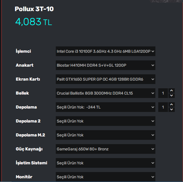 Intel işlemcili ve güçlü ekran kartı modeline sahip Pollux 5T-10 masaüstü oyuncu bilgisayarı en uygun fiyat ve taksit seçeneğiyle GameGaraj'dawww.gamegaraj.com