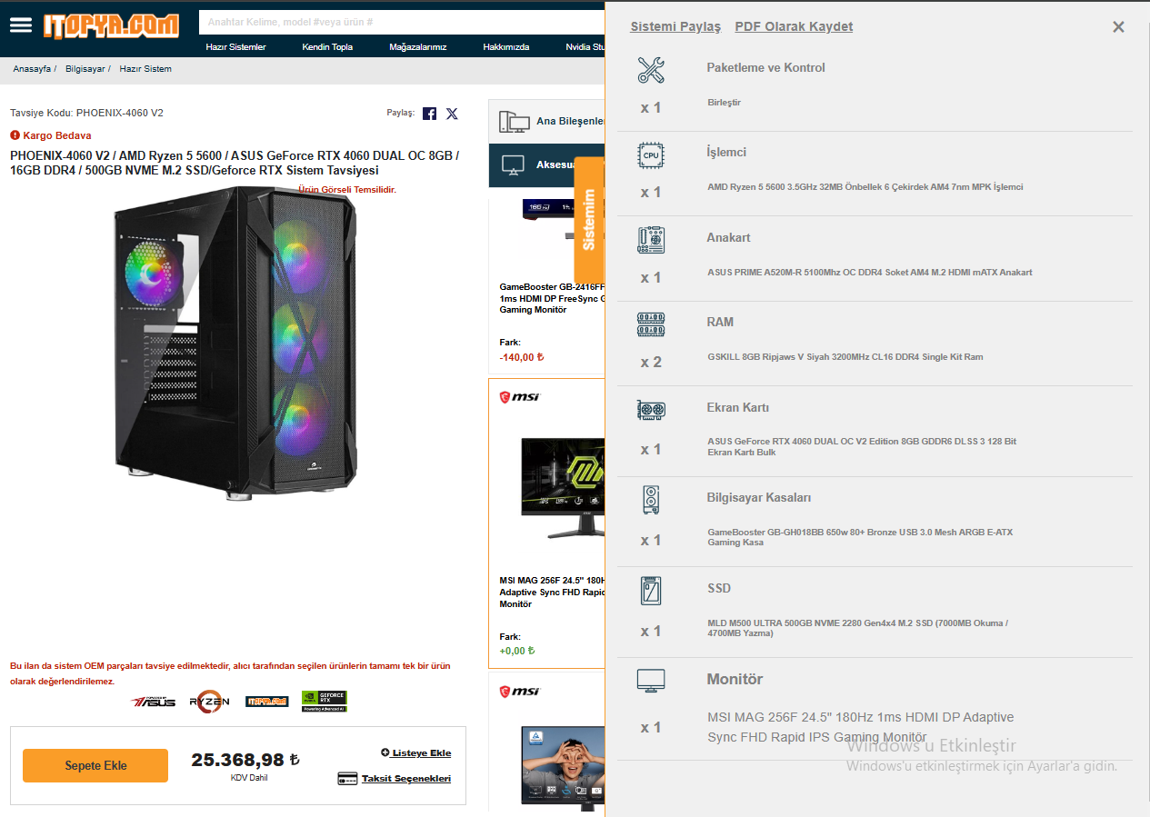 hocalarım sa, bir süredir pc işlerinin içindeyim uygun fiyata ürün bulmak için bu forumu gece gündüz kullandım. ama artık sıkılmaya başladım. bu yüzden kendime 4060 sistem alıp pc işlerinden çekilmek istiyorum aşağıdaki sistemi ayarladım. Bu ürünün 1000tl altına da bulunabilir ama artık gerçekten sıkıldım. Bu yüzden aşağıdaki sistemi almaya karar verdim.