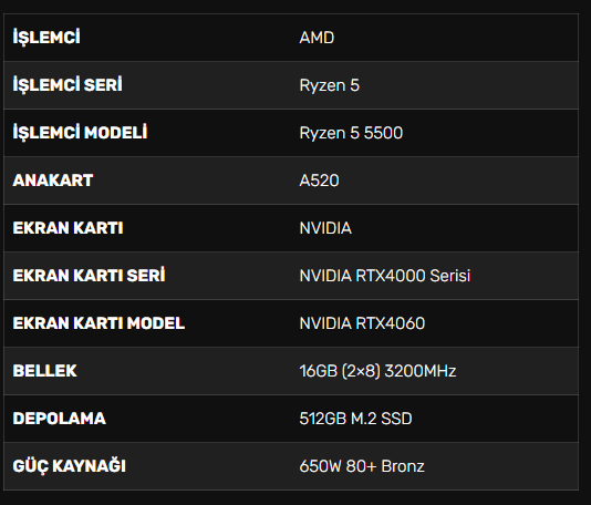 Merhabalar.Bundan 7 8 ay once cok övüldüğü için https://www.gamegaraj.com/urun/pulse-5a/ bu sistemden satın aldım aldıgım zamanlardan beridir performansım cok düsük normal karsılıyordum taki yüksek grafikli oyunlara geçene kadar 4060 ekran kartlı sistem rust gibi bir oyunda düsük ayarlarda 70-80 fps arkadasım rx580 120 fps alıyor aynı ayarlarda sebebi ne bilmiyorum