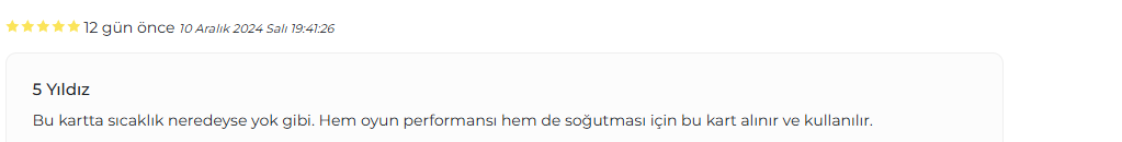 Dostum okuduğunu anlama özürlüsün galiba demişim ki 4060ti ventus kullanıcısıydım kartı kullandım 1 yıl boyunca oyunlarda 70 dereceyi görüyordu %70 fan hızında.Şuan kullandığım gainward phoenix kendim 2900mhz'ye overclock yaptım %100 kullanımda %30-%40 fan yükünde 65 dereceden 1 derece üstünü görmüyor.Şimdi ben sana mı inanayım kendi tecrübeme mi? yoksa önerdiğin ventus kartın saçma fiyatlandırmasına mı?