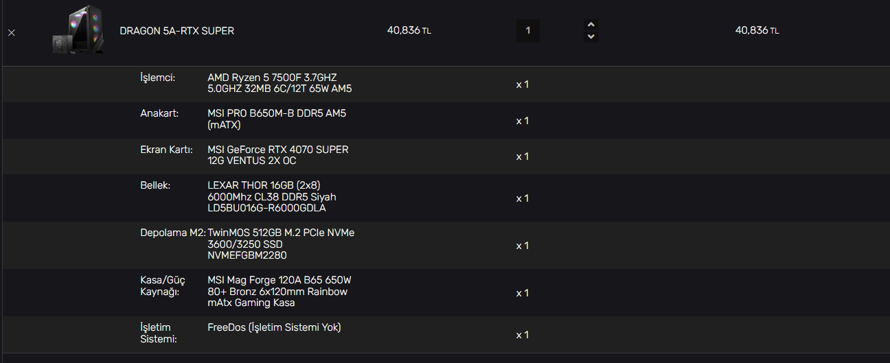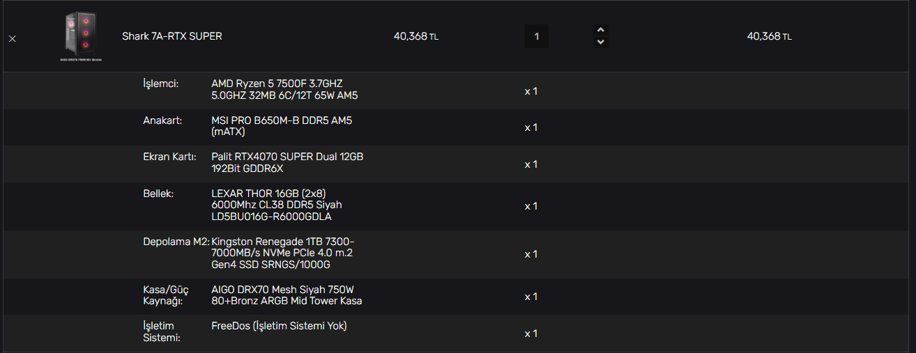 Öncelikle merhaba arkadaşlar. Bu iki sistemde hakkında 3 4 tane sorum var. Üstteki sistemin iyi yanı msi 4070 super ve msi psusu olması fakat alttaki sistemde ise 1tb kingston ssd'si var. ilk sorum palit ile msi ekran kartında cok fark var mı? 2. sorum aigo drx70 kasası iyi mi msi mag yerine tercih edilir mi? 3. olarak sizce 2x8 16gb cl38 rammi almak mantıklı yoksa 1x16gb cl48 ram mi almak mantıklı eğer 1x16 cl48 alırsam yanına 1 tane daha aynısından almayı düşünüyorum ama cl48 ram icin değer mi?