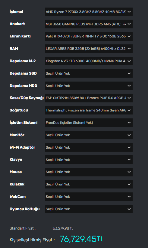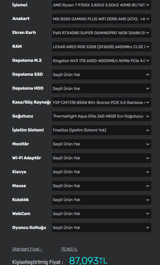 Biraz daha baktım da son olarak 4070 ti super ve 4080 super arasında gidip geliyorum.