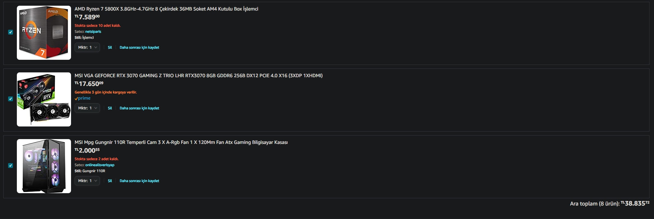 Kötü olmuşParçaların hepsi toplamda 39k'ya denk geliyor fakat uyumsuzluk veya daha iyi bir ekleme öneriniz var mıdır almadan önce danışmak istedim.