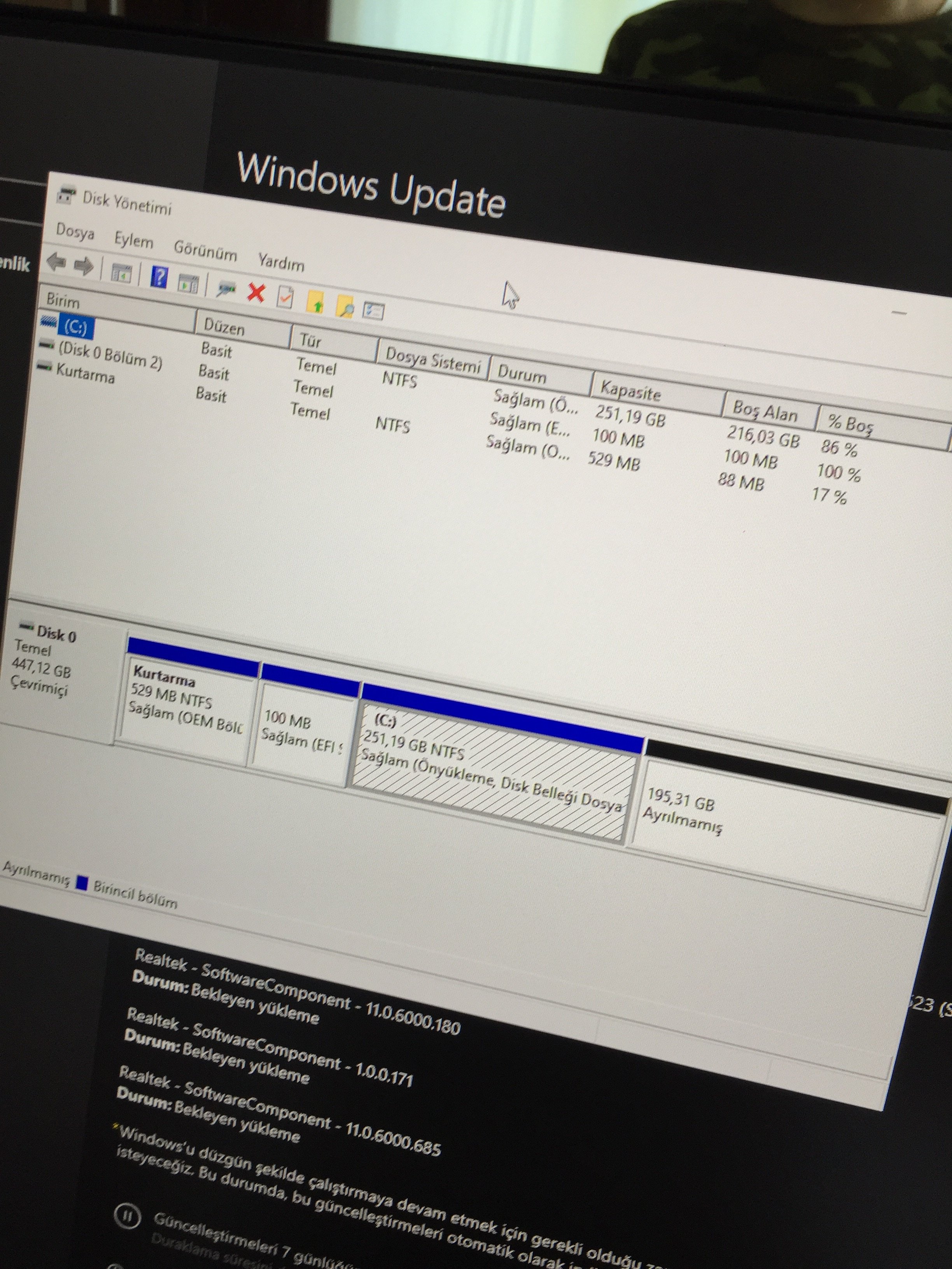 3 mavi 1 siyah çizgi varSol altta windows logosuna sağ tıklayın oradan "disk yönetime" girin. Orada siyah şeritli bir kısım var mı?