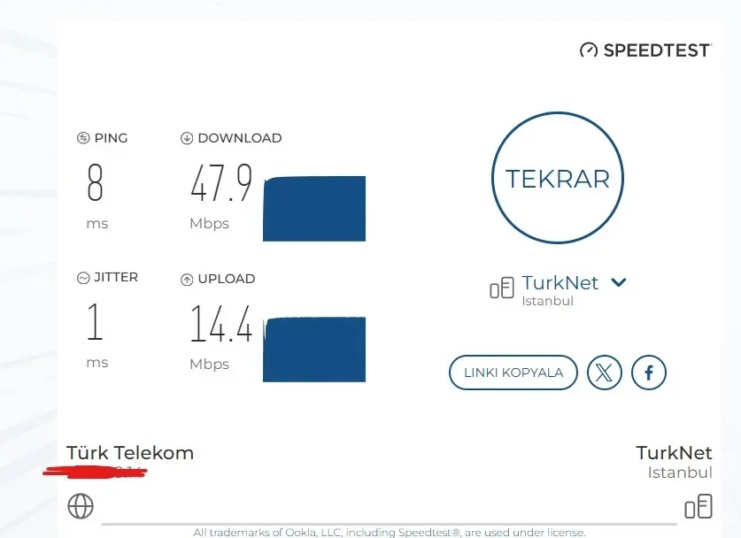 Herhangi bir yerden sorgula Netspeedden falan bakabilirsin.