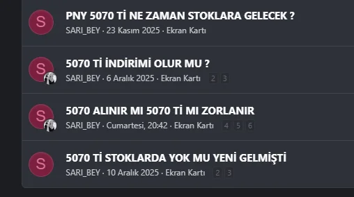 5070 ile 5070 ti arasında fark var hocam bütçe çıkıyorsa değer çıkmıyorsa bu kadar zorlama bence 5070 fazla fazla yeterlihocam tam alacam zam geliyor stok bitiyor