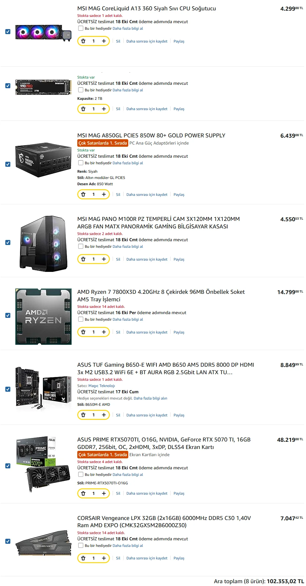 Merhaba, Amazondan 5070ti ekran kartı bir sistem topladım fakat fiyatı yüksek geldi. Siz olsaydınız sistemde hangi değişiklikler yapardınız? F/P bir sistem arayışındayım.
