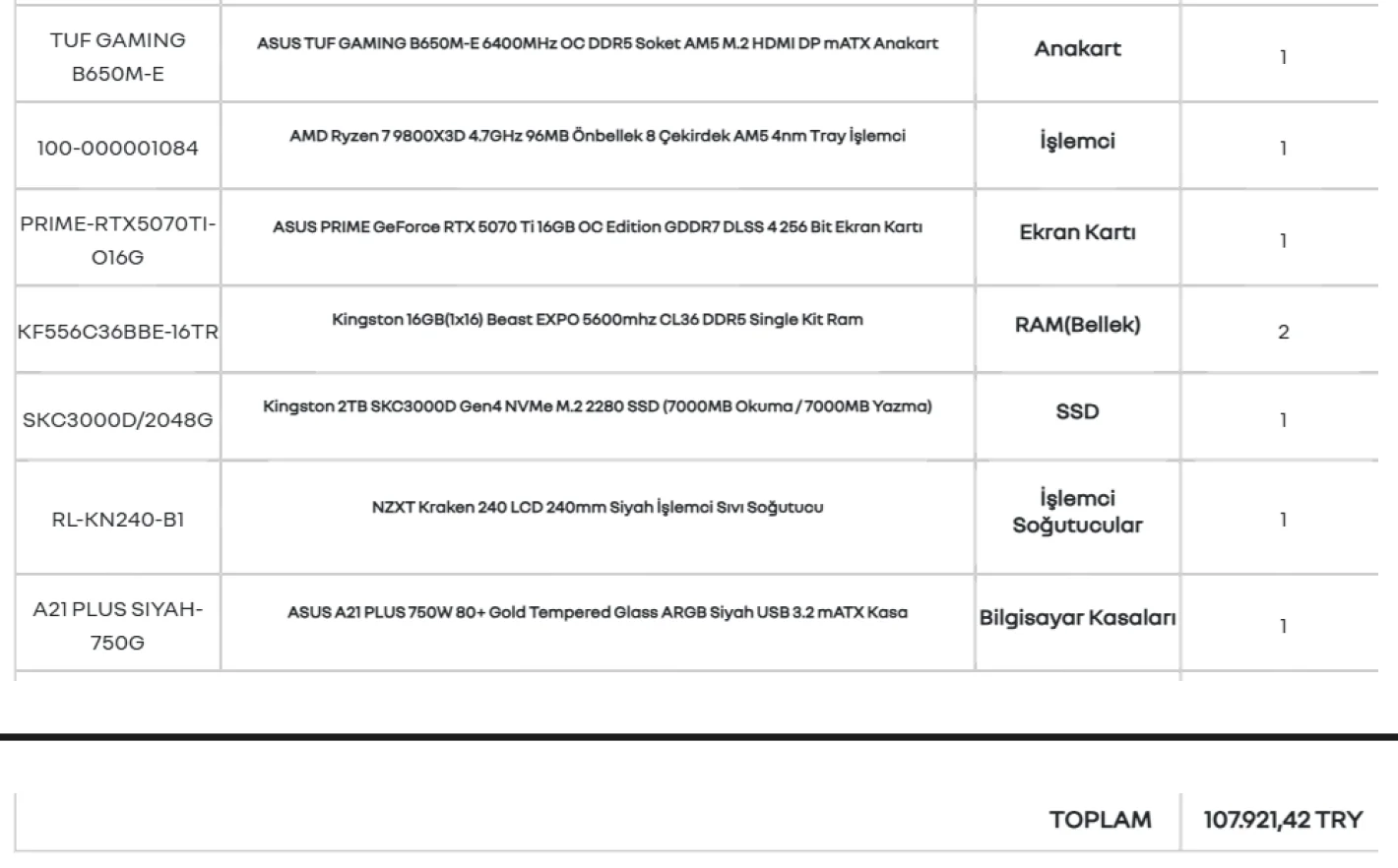 Ekran kartı olarak 5070ti, işlemci olarak ise ryzen7 9800x3d düşünüyorum. Bu iki parçanın üstüne inşa edeceğim diğer parçalar hakkında ise sizlerin görüşünü merak ediyorum. Bütçem ise 90-110k arasında.