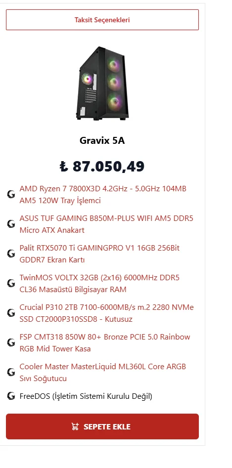 Merhabalar arkadaslar.Hayatımda ilk defa sistem dizmek istiyorum.İnternetten araştırdım fakat aklıma oturan tek şey amd 7800 3xd işlemci ve 5070ti ekran kartı kullanmam gerektiği oldu.Geri kalanlar için yardım edebilir misiniz ? Ayrıca ekran kartı için bir sürü farklı markanın farklı fiyatları var...O konuda da yardım edebilirseniz çok sevinirim şimdiden teşekkür ederim