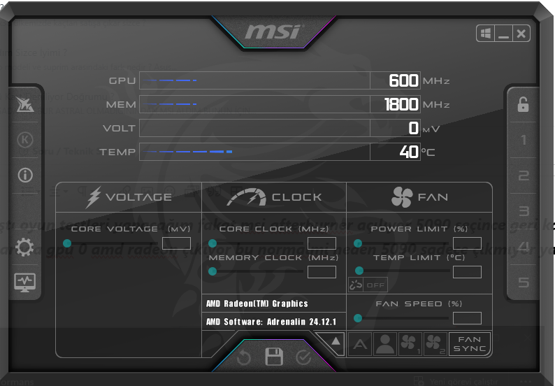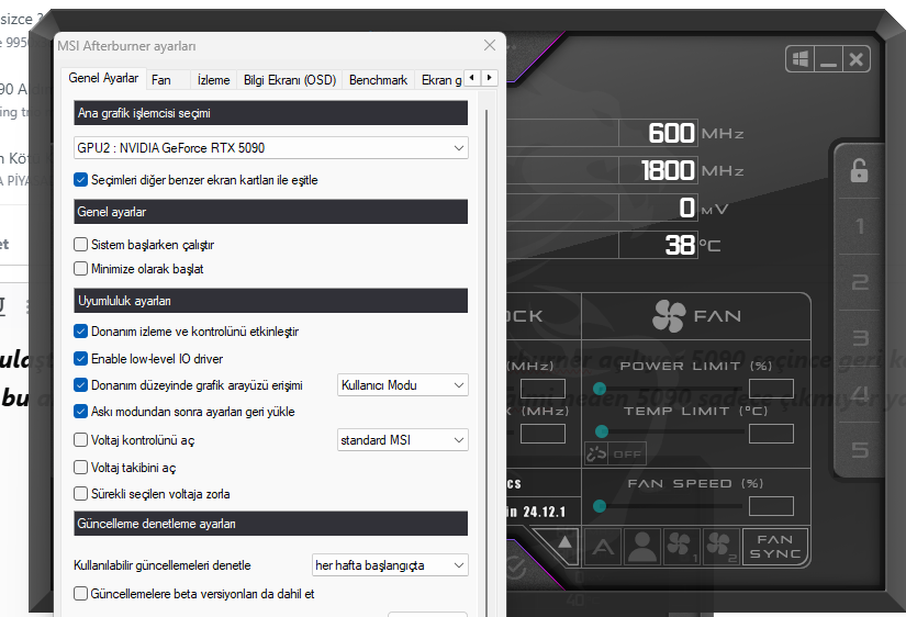 5090 Sonunda elime ulaştı oyun testleri yapacağım fakat msi afterburner açılıyor 5090 seçince geri kapanıyor bu sorunun çözümünü bilen varmı bu arada gpu 0 amd radeon çıkıyor bu normalmi neden 5090 sadece çıkmıyor yardımcı olurmusunuz ?