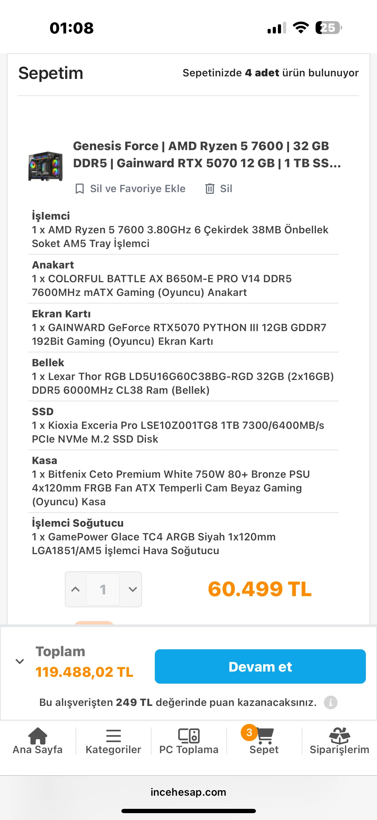 hocam zaten çoğu site en az 3 taksit yapıyor İncehesap pahalı oluyor 60 bin liraya 9070xt sistem var